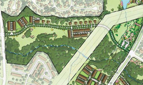 On November 6, Monument Realty presented their concept of replacing 8 single-family (SFH) detached home lots with 7 strings of townhomes (TH) along the still-to-be-built extension of Stewartown Road in Area 2 of the Bloom Village development. Monument Realty President Russell Hines addressed the crowd of 70-plus residents, mostly from Patton Ridge, who were unanimously against this concept. Monument’s plan calls for 40 total TH, a net change of 32 over the current approved site plan.