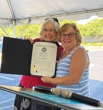 On July 11, volunteers, family members and friends gathered at Asbury Methodist Village to recognize three Gaithersburg Meals On Wheels volunteers. Senator Nancy King (also a resident of Montgomery Village) presented the citations. In the late 1980s to early 1990s, Senate King coordinated Gaithersburg Meals On Wheels and served on its Board. Here is a brief background on the three recognized volunteers.